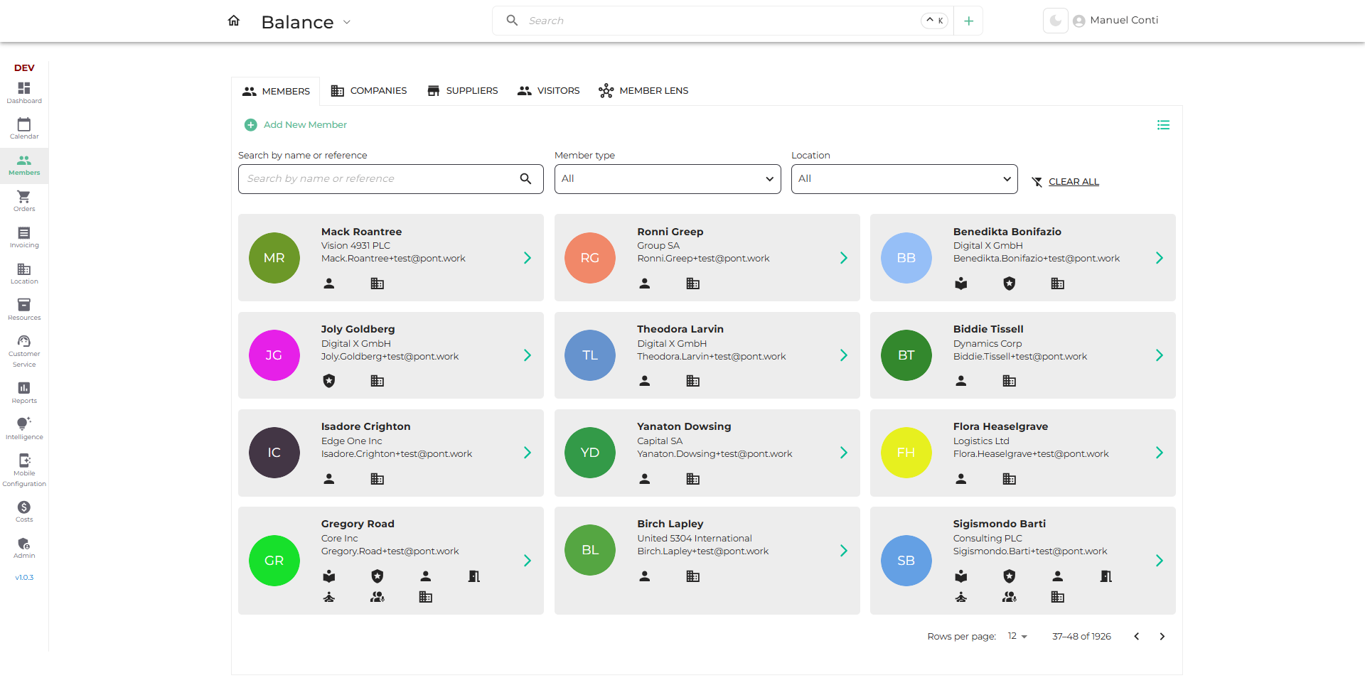 The Members Module is your central place for managing everyone connected to your coworking space — from individuals and teams to companies and suppliers. It allows you to easily search, filter, and view member profiles, keep track of billing and bookings, and maintain smooth operations. This view is available in 2 layout- Grid View and List View.