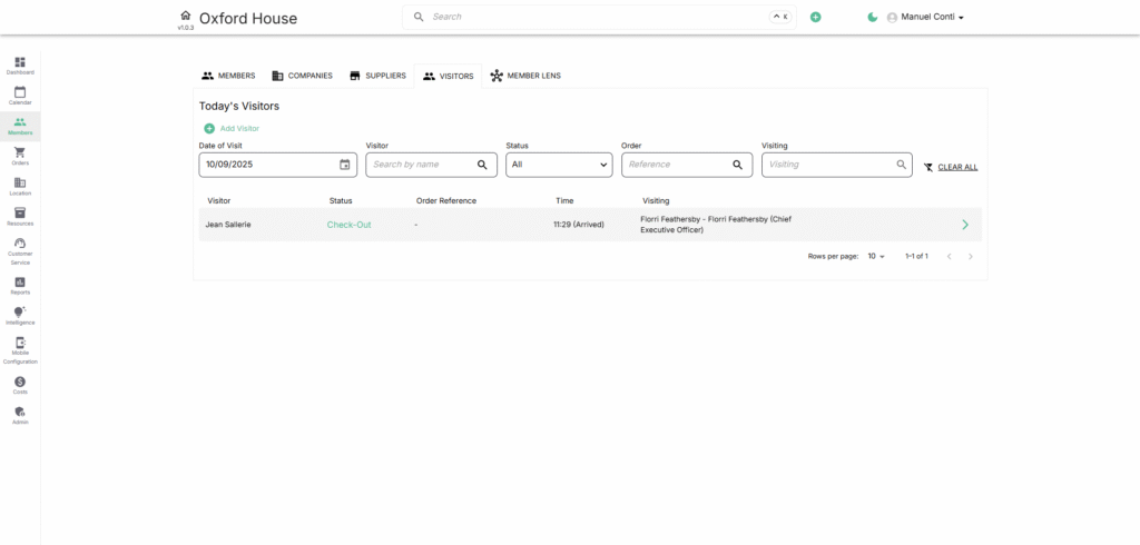 • Visiting – Shows who the visitor is meeting (member/contact/company).