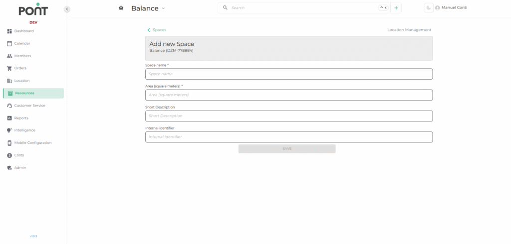 The Add Space feature allows operators to create new spaces efficiently with all necessary details.