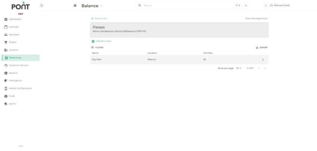 The Passes Section under the Resources module is dedicated to managing various access passes such as day passes, drop-in passes, and quick-access passes. It allows operators to create, monitor, and control the availability and usage of passes across different locations.